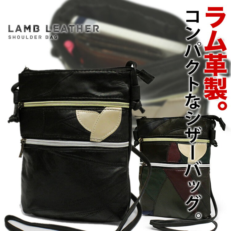 【クリックポストで送料無料】ショルダーバッグ ミニショルダーバッグ ラム革 羊革 ラム革 パッチワーク レディース 0423